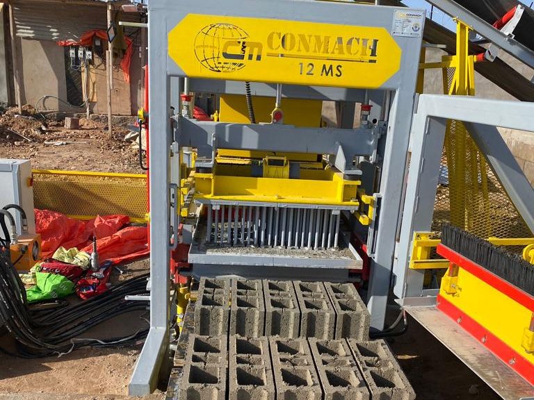 Sırbistan’ın Niş şehrine kurulan Conmach BlockKing-12FSS Briket Makinesi, 2 x 5 m3 agrega bunkerine, çimento torba sistemine ve istifleyiciye sahiptir. Makine, 8 saatte 4.000 adet 20 cm blok veya 5.000 adet 15 cm blok üretmektedir.