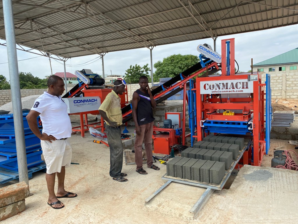 Türkiye’nin Trakya bölgesinde Çorlu-Tekirdağ’da üretim faaliyetlerine devam CONMACH Afrika ülkesi olan Gana / Akra şehrinde BlockKing-12MS Beton Briket Makinesi kurulum ve montajını tamamladı. Akra’da yer alan şantiye tesislerinde gerçekleşen çalışmaya Conmach teknik servis ekibine ait personel katıldı. Teknik servis yetkilisi Abdullah Yılmaz “Briket Parke Taşı Makinesi kurulum ve montajını başarıyla tamamladık, makine kombinemizi oluşturan konveyör bant, karıştırıcı ve makinelerimize ait kalıp çeşitlerimizde makine kombini içerisinde yer aldı” dedi.