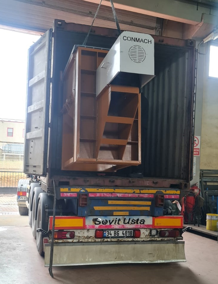 İhracatı tamamlanan beton blok makinesi BLOCKKING-09MS/MD bir konteynır içerisinde çekici ile İstanbul Ambarlı limanına taşındı. Burada gemiye yüklemesi yapılan makine ekipmanları Gana da bulunan Tema Port limanına bir adet makine ana şasesi, karıştırıcı, 2 adet konveyör bant, 4 adet briket kalıbı, 3 adet el arabası ve 200 adet palet ile gönderildi. Aynı gün içerisinde ikinci ihracatını Nijerya’ya gerçekleştiren Conmach Makine BLOCKKING-12MS/MD Satılık Briket Makinesi modelini Türkiye /Tekirdağ Asyaport limanından Nijerya Tincan port limanına bir adet anaşase, karıştırıcı, 2 adet konveyör bant, 4 adet el arabası, 4 adet briket kalıbı, 2 adet briket kalıbı, 1 adet bordür kalıbı ve 3 adet parke kalıbı ile birlikte yollandı.