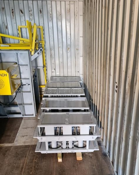 Türkiye’de üretimi tamamlanan beton blok makinesi Çorlu’ da bulunan fabrikamızdan 40 ft hc konteynır içerisinde BlockKing-12MD makine ana şasesi, beton karıştırıcısı, 2 adet konveyör bant, 4 adet el arabası, 3 adet briket kalıbı, 6 adet parke kalıbı, 2 adet bordür kalıbı ile ambarlı limanı sevk edildi. Blok yapma makinesi ve ekipmanları müşterimize ulaştırılmak üzere Ambarlı limanından Somali Berbera limanına doğru yol aldı. Gönderilen ekipmanlar arasında aşınma ve yıpranmaya karşı yedek parçalar da yer aldı. Firmamız CONMACH tarafından üretilen beton blok yapma makinesi hakkında daha fazla bilgi, edinmek için web sitelerimizi, sosyal medya hesaplarımızı, ticari fuar ve sergilerimizi ziyaret etmenizi veya doğrudan bizimle iletişim kurulmasının ilgilenen beton blok üreticilerine öneriyoruz.