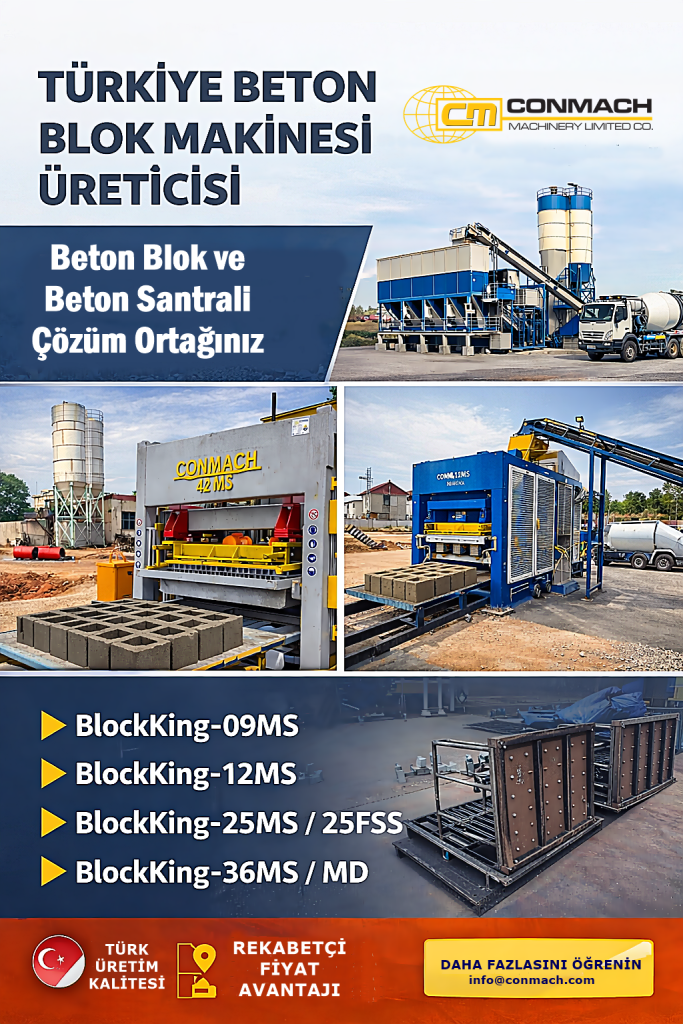 Güvenilir bir Türkiye beton blok makinesi üreticisi ararken, Conmach Makina güçlü ve deneyimli bir çözüm ortağı olarak öne çıkmaktadır. Geniş ürün yelpazesi, ihracat odaklı yapısı ve uluslararası referanslarıyla Conmach, Türkiye’nin küresel inşaat makineleri pazarındaki itibarını artırmaya devam etmektedir.