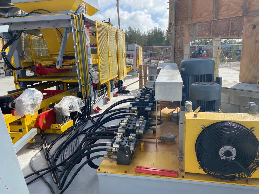 Briket Makinesi BLOCK-42, karmaşık hidrolik valf sistemleri ve güçlü vibratör motorları sayesinde pürüzsüz ve dayanıklı bloklar üretir. Bahamalar’daki montaj sürecinde, tesisin kalbi sayılan 100 tonluk çimento silosu ve 3 gözlü agrega bunkerleri titizlikle yerleştirilmiştir.