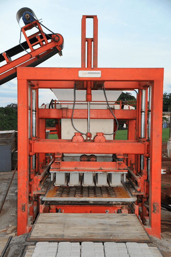 Briket Parke Taşı Makinesi BlockKing 36MS/MD CONMACH Briket Makinesi briket üretiminde çeşitli kalıplar kullanılmaktadır.Briket kalıplarının baskı kalınlığı 15 ila 20 mm arasında iken, parke kalıbı baskı kalınlığı 20 mm, kalıp ara bölmeleri 10-12 mm, parke taşı kalıbı sertlik oranı ise 42 ila 45 malzeme sertlik oranına sahiptir. Makinemiz 0,5 – 0,75 m3 karıştırıcı tercihen kullanılır. Karıştırıcımızın özellikleri saç kalınlığı : 8 mm St 37 veya St52, Aşınma Saç Kalınlığı : 10 mm St 52 veya Hardox 400, Redüktör Motoru : 22 – 30 kW. Redüktör Devri : 28 d/dk, Elektrik Malzeme Markası : GmtCnt / Siemens / Telemecanique, Motor Markası : Gamak / Elk / Volt, Redüktör Markası : Yılmaz / Polat / Dişsan.