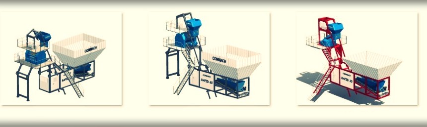 Conmach Kompakt Beton Santrali, malzeme depolama, tartma, taşıma, karıştırma, boşaltma ve tam otomatik kontrol sisteminden oluşmaktadır. Tüm çalışma süreçleri, çalışma şekli, bakım ve onarımları, sabit beton santralleri ve mobil beton santralleri ile aynıdır. Conmach Kompakt Beton Santrali, mobil el becerisi, kolay demontaj, hızlı, kolay depolama yönetimi ve diğer benzersiz özelliklere sahip olması; Demiryolları, köprüler, limanlar ve diğer mobil şantiyeler için