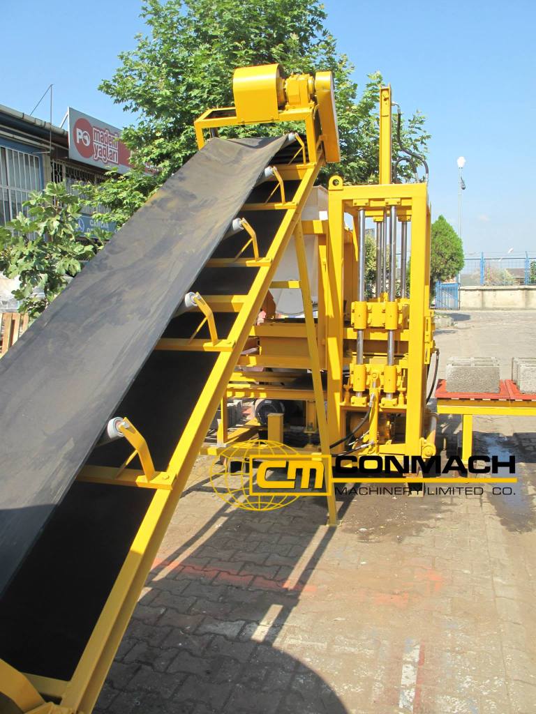 Beton Briket Makinesi Konveyör Bandı; Kum, çakıl, çimento, harç gibi malzemelerin taşınmasında kullanılır. Vibrasyon sistemi ile çalışır..